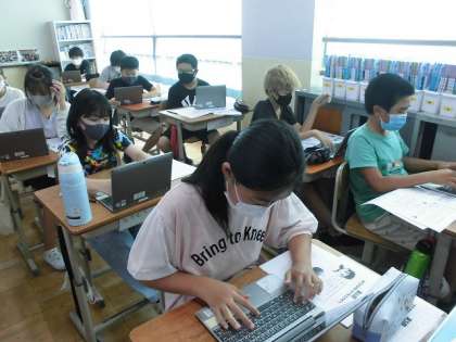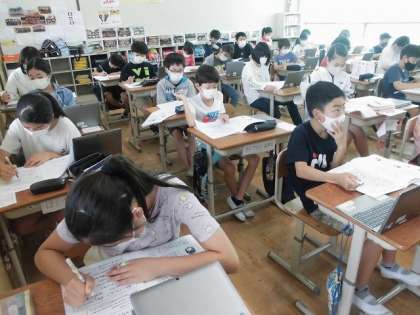 授業では,班ごとに相手の素敵だなと思うところを,タブレットを使って交流していきました。