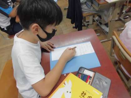 それぞれ,スーパーマーケットの工夫を選び,なんのためにその工夫をしているのかを考えて書いていきました。
