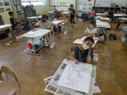 さつまいも堀りのときの絵を描いています。