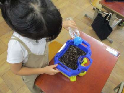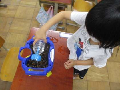 小さな種がびっくりしないように,優しくお水をあげていました。