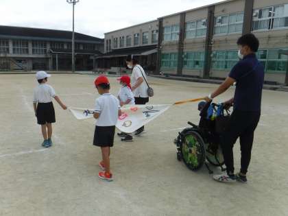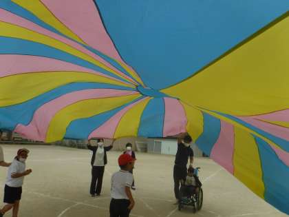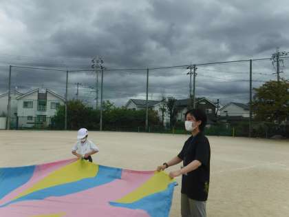 スポーツフェスティバルでのそらいろの団体競技の練習をしました。みんな大好きなバルーン!最後に中に入れるのが嬉しくてタイミングを逃しません。
