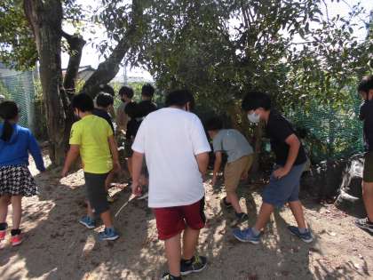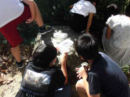 中間休みに生き物係が「虫探検ツアー」を企画してくれました。