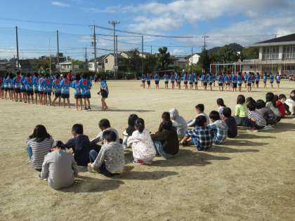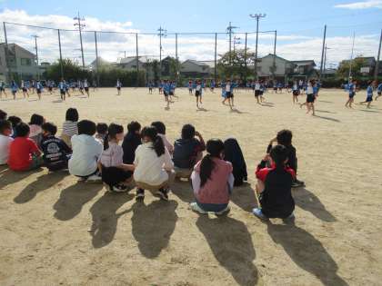 スポーツフェスティバル当日は4年生の演技が見られないので,リハーサルを見せてもらいました。来年は演技です。4年生の演技を見て「すごいなあ。」「来年は,こんなことするんや。」と。