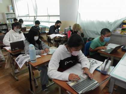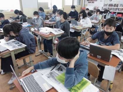6年生の国語科「鳥獣戯画を読む」の学習の様子です。
