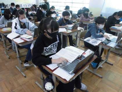 6年生の国語科「鳥獣戯画を読む」の学習の様子です。