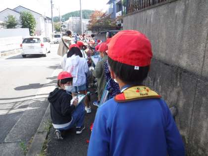 2年生の生活科の学習で校区の町たんけんに出かけました!学校の北東側を歩いてどんなお店や自然・みんなが使うものがあるのかを調べました。