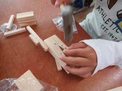 くぎうちも3回目となれば慣れたものです。木の厚みによって,くぎの長さや太さをかえて打っています。作品も出来上がってきています。