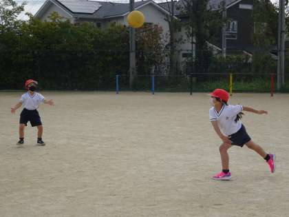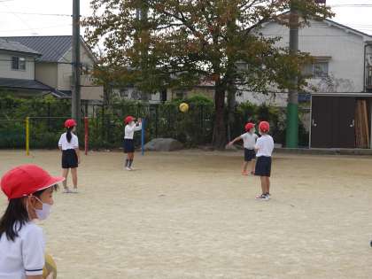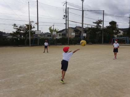 友だちがとりやすいようにうまくボールをパスする練習をしました。