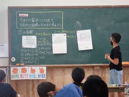 多角形の面積の求め方を考えました。同じ流れでいろいろな図形の求め方を考えてきたので子ども達も慣れた様子でいろいろな求め方にチャレンジしていました。それぞれの図形の面積の求め方をしっかり覚えるまで練習していきましょう。