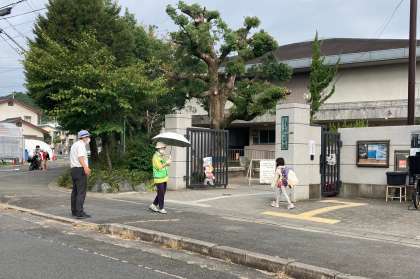 いつも見守り隊の方々が登校時に小学校を中心とした横断歩道や危険な所に立ち,子ども達の安全を見守っていてくださいます。