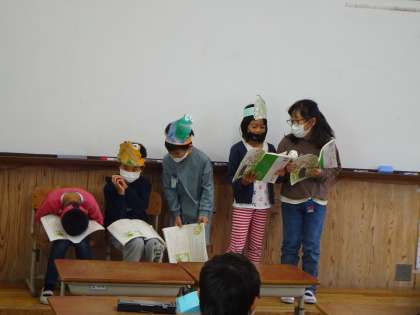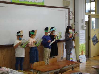 お互いの音読劇を見合いっこしました。
