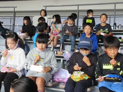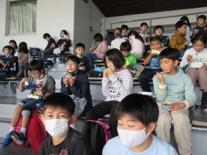 子どもたちの楽しみの一つであるお弁当。朝早くからありがとうございました。各クラス,グループごとに仲良く食べました。
