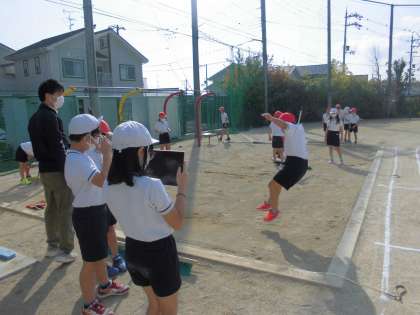 今日はGIGA端末を使って自分の跳んでいる姿を撮影しました。
