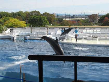最後のお楽しみは「イルカショー」です。近くで見ると迫力がありますが,写真で伝えるのは,なかなか難しいですね。