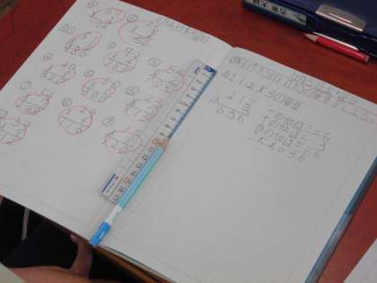 3年生で初めてかけ算の筆算の仕方を学んだ子どもたち。