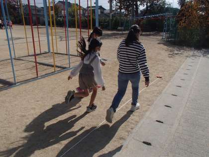 メジャーを押さえたり距離を測ったり,班で協力して取り組みました。