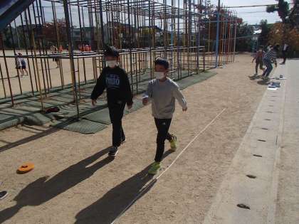 測った距離を基に自分の歩幅の平均を求めました。計算の手順やcm・mの単位変換など,お互いに確認し合って取り組みました。