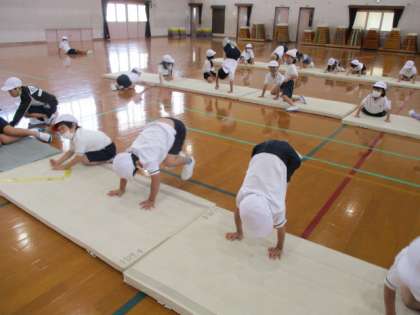 できるようになった技は,ころがり方や,体の曲げ伸ばしなど,次のレベルを目指して繰り返し練習しています。