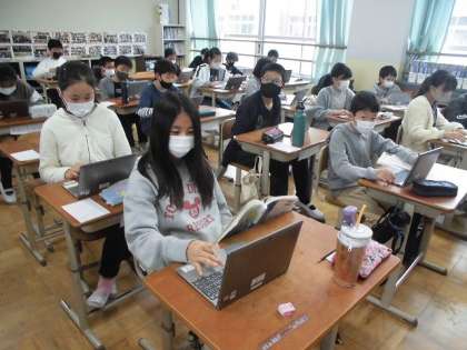 6年生の国語科「古典芸能の世界」の学習の様子です。