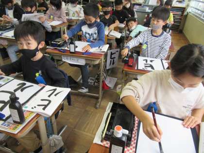 漢字・ひらがなの学習をしてきました。今回は「かたかな」です。筆遣いも,上手になってきました。小筆を使って書く名前については,まだまだ難しいですね。これからも練習あるのみです。