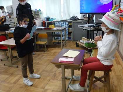 体育館で風船バレーをした後は,教室でボーリングを少ししました。みんなからプレゼントのカードを渡しました。「ハッピーバースデー」も歌いました!終わりの言葉では「今日は,楽しかったですか?ぼくは楽しかったです。次はぼくの誕生日です。」というと「今日は,カプラが楽しかったです。みんなありがとう!」とみんなにお礼の言葉を言いました。
