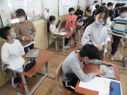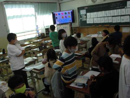 アルファベットについて子どもたちがやりとりをしています。