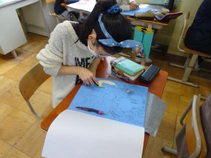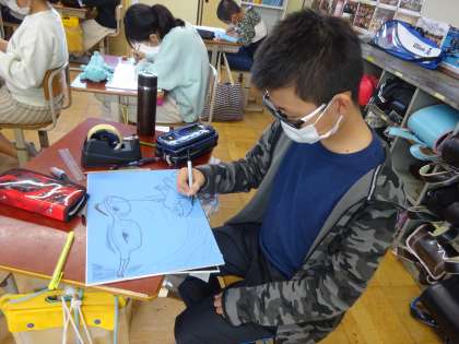 6年生の図工では版画に取り組んでいます。今回のテーマは「腕相撲」です。