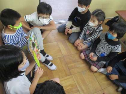 1年生のために素敵な本を選んでじっくり読み聞かせてくれ,1年生も真剣に聞き入っていました。