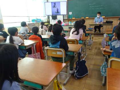 先生に本を読んでもらえて,うれしそうな子どもたち。