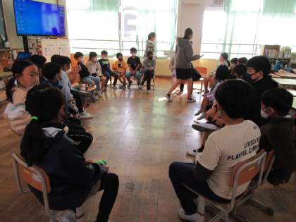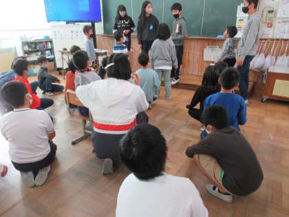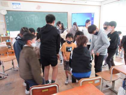 久しぶりの縦割り遊びでした。「なんでもバスケット」や「絵しりとり」など,6年生が考えてくれた遊びを楽しそうに参加していました。
