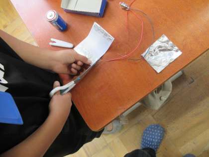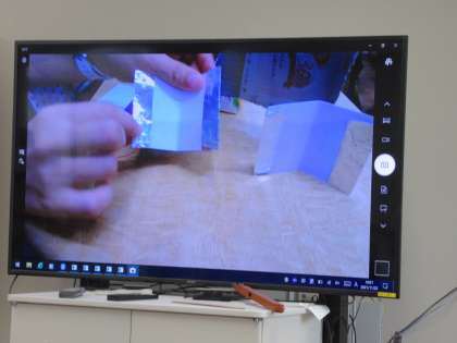 「電気の通り道」の学習の発展として,おもちゃ作りに取り組んでいます。この時間は,先ずはスイッチづくりです。テレビ画面での見本を見ながら一生懸命です。どんなおもちゃが出来上がるか楽しみですね。