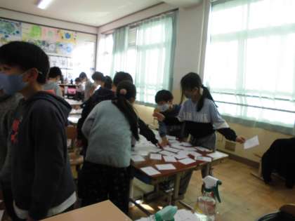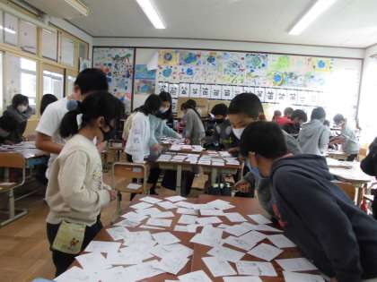 自分達で慣用句を調べて,それについて読み札ととり札をつくったオリジナルのかるたです。