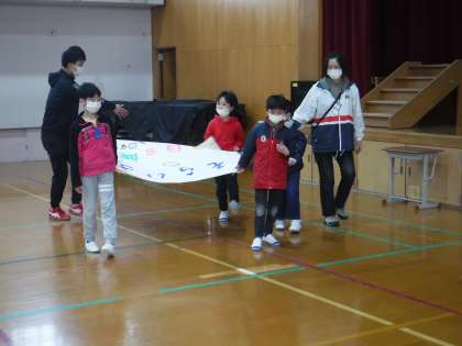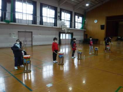 21日の学習発表会に向けて体育館での練習。大きな声でセリフを言う練習をしました!