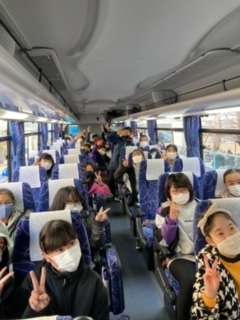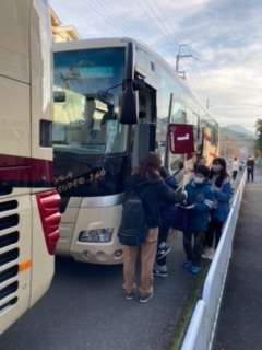 クラスごとにバスに乗り、出発です。見送りありがとうございます。行ってきます。