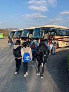 集合時間をきちんと守る6年生です。クラス写真を撮って、時間通り出発しました。