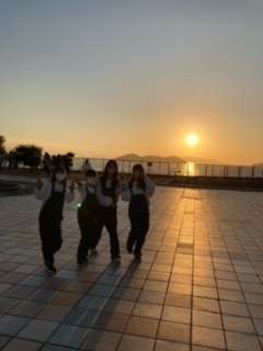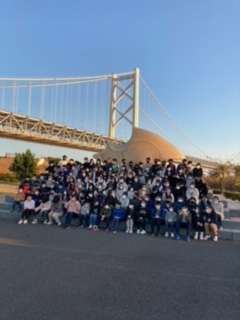 瀬戸大橋を渡っています。与島PAでは、学年写真を撮りました。夕陽もとてもきれいです。