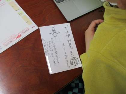 年賀状と同じように,挨拶の言葉やイラストなどを丁寧にかいていました。