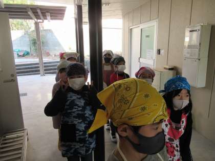 今週で2学期最後の給食です。当番も,冬休みに入るので家からエプロンを持ってきました。「お兄ちゃんが作らはった。」とか「おかあさんの」とか教えてくれました。とっても可愛いです。