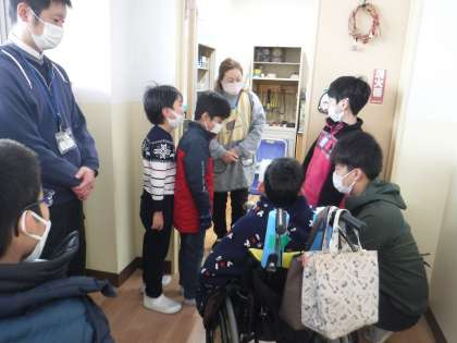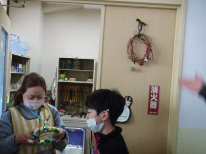 お世話になっている教職員にサツマイモのつるで作ったリースをプレゼント!交流の先生にも喜んでもらいました。去年プレゼントしたリースが用務室の前にかけてありました!
