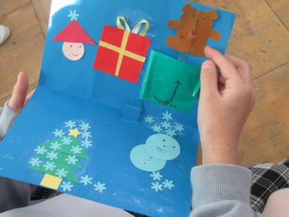 クリスマスカードの交換です。くじを引いて,その名簿番号の人のをもらいます。誰のカードか,みんなドキドキワクワクでした。最後は,記念写真を撮って終わりました。