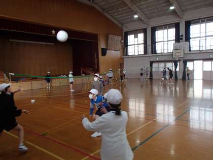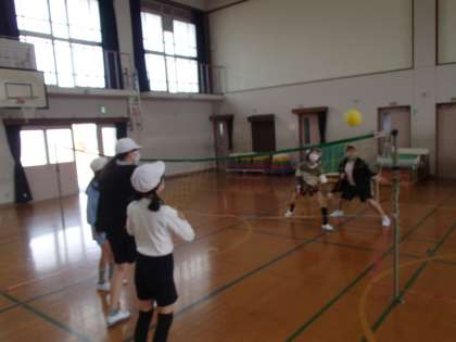 3学期の屋内体育は,ソフトバレーボールに取り組み始めました。バスケットボールやベースボールとは違う球技の楽しさに触れていきます。