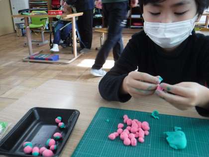 巨匠展に向けて作品の制作を始めました。今年の北上支部のテーマは「〇〇パーク!」そらいろは,水族館・スポーツパーク・くだものパークを作ります。「今日の図工,楽しい!」と作っていくのを楽しみました。