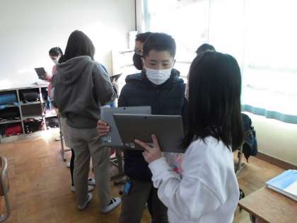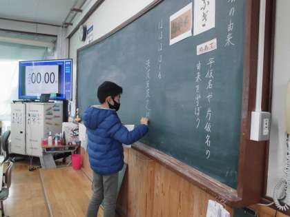 子どもたちは,万葉仮名で書かれた文章と,普段使っている漢字やカタカナ,ひらがななどで書かれた文章を比べて,「今の方が言葉のまとまりがわかりやすいな」などと話していました。
