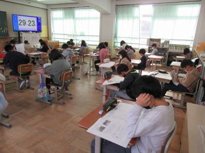今日は,社会のプレジョイントプログラムをしました。みんな真剣に取り組んでいます。明日は,いよいよ最後は,国語です。あとひと踏ん張りですね。
