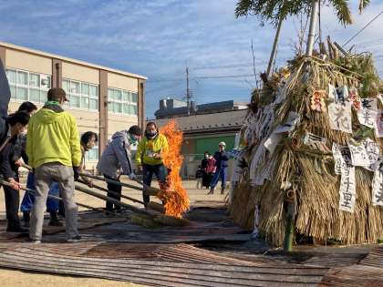 10時になり地域の方,消防団の方が見守る中いよいよ点火です。