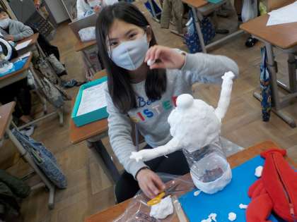 粘土で髪の毛を作ったり,ゆびっ先を作ったり,細かいところをつくるのは難しそうでした。みんな,集中して取り組んでいました。