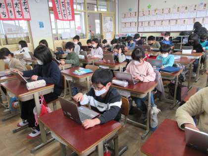 ぐんぐんタイムの時間に,タイピングの練習をしています。みんなで静かで真剣です。少しでも早くうてますように。