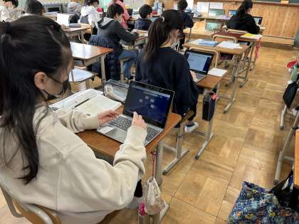 子どもたちは,6年間の思い出をタブレットを使って整理していきました。