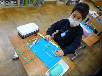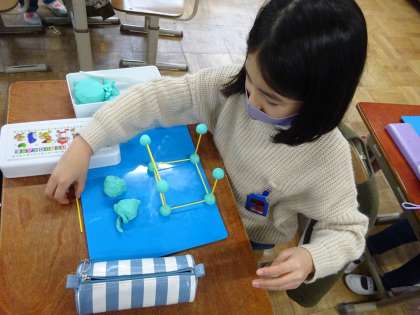 今日は,粘土と棒をつかって