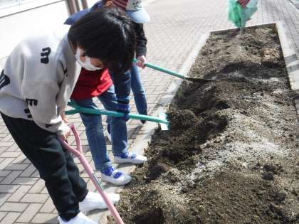 今年もジャガイモを植えるので畑を耕して準備をしました。フカフカの土になるようにシャベルで掘り起こしました。肥料も入れました。畑の横の植木鉢には,チューブの芽がのびていました。暖かくなってきました!